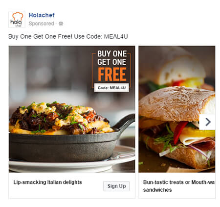 Enter Facebook’s slideshow ads, which is almost like a video but without the added time and expense. Similar to videos, you can seamlessly incorporate moving visuals, sound, and text in this format and tell attractive stories. In fact, an impressive slideshow can also be created using stock images taken from your mobile phone. Overall, it takes relatively less time to produce and also isn’t bandwidth and speed hungry like videos.