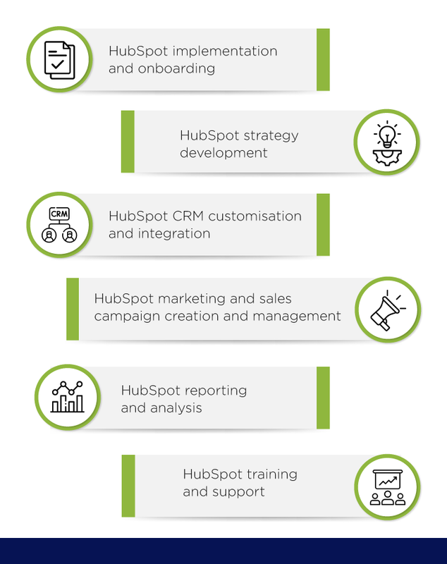 HubSpot offers a wide range of services, including marketing, sales, and customer service tools. Depending on your business requirements, you may need assistance with all or only some of these tools.